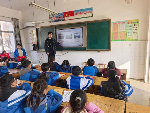 自动化252班杜贻彤化身乡镇小学“小老师”,用浅显的语言、鲜活的事例为孩子们宣讲党的二十届四中全会精神。将“国家治理”“民生保障”等宏大概念,转化为校园安全、便民服务等身边故事,让红色理论在童心间生根发芽,也更加坚定了传播党的声音、扎根基层实践的信念。